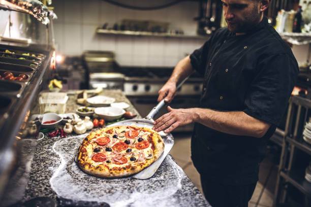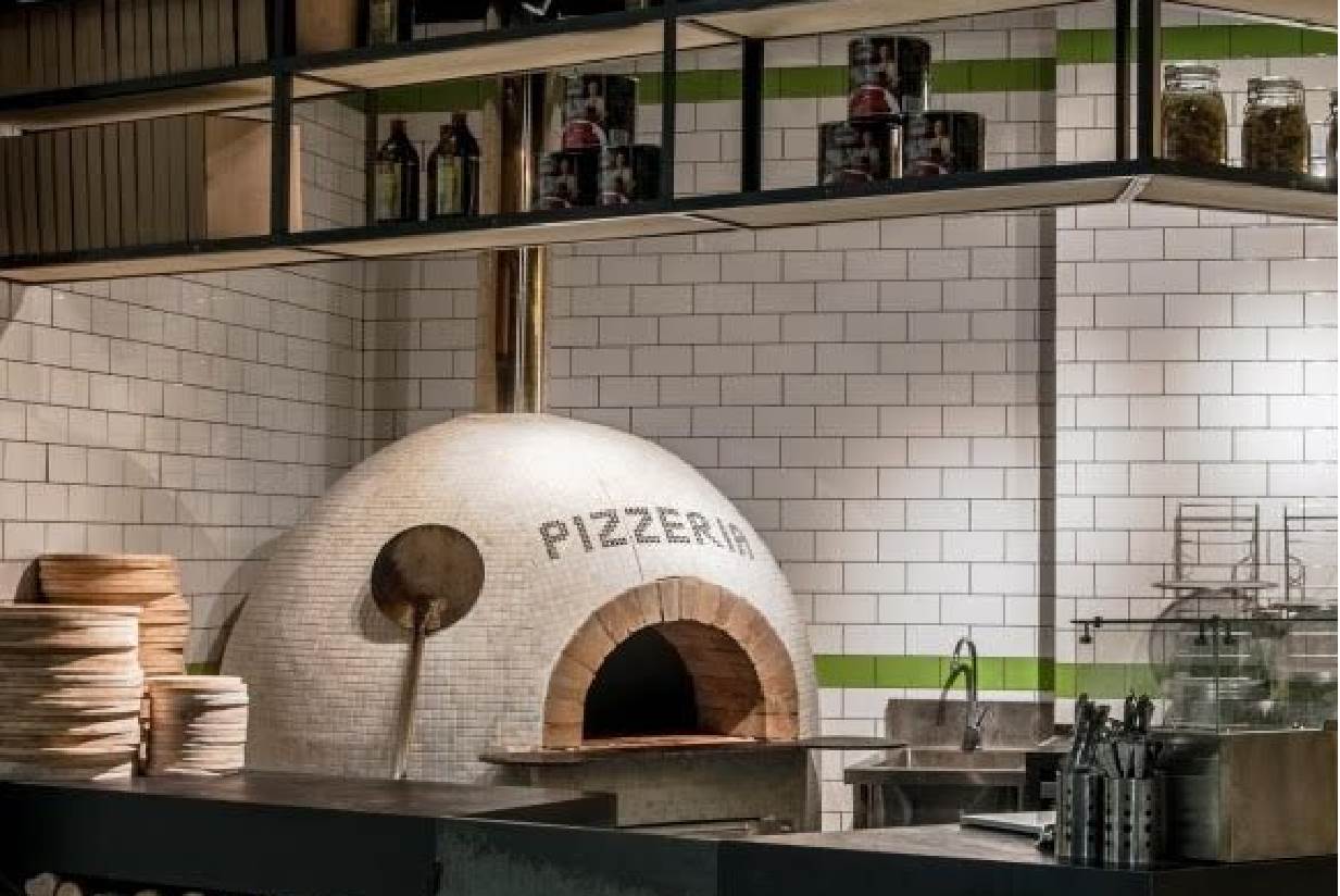 Equipment: Wood-fired pizza oven, 6-burner stainless steel stove, freezer, refrigerator, mini oven, dishwasher, counters,